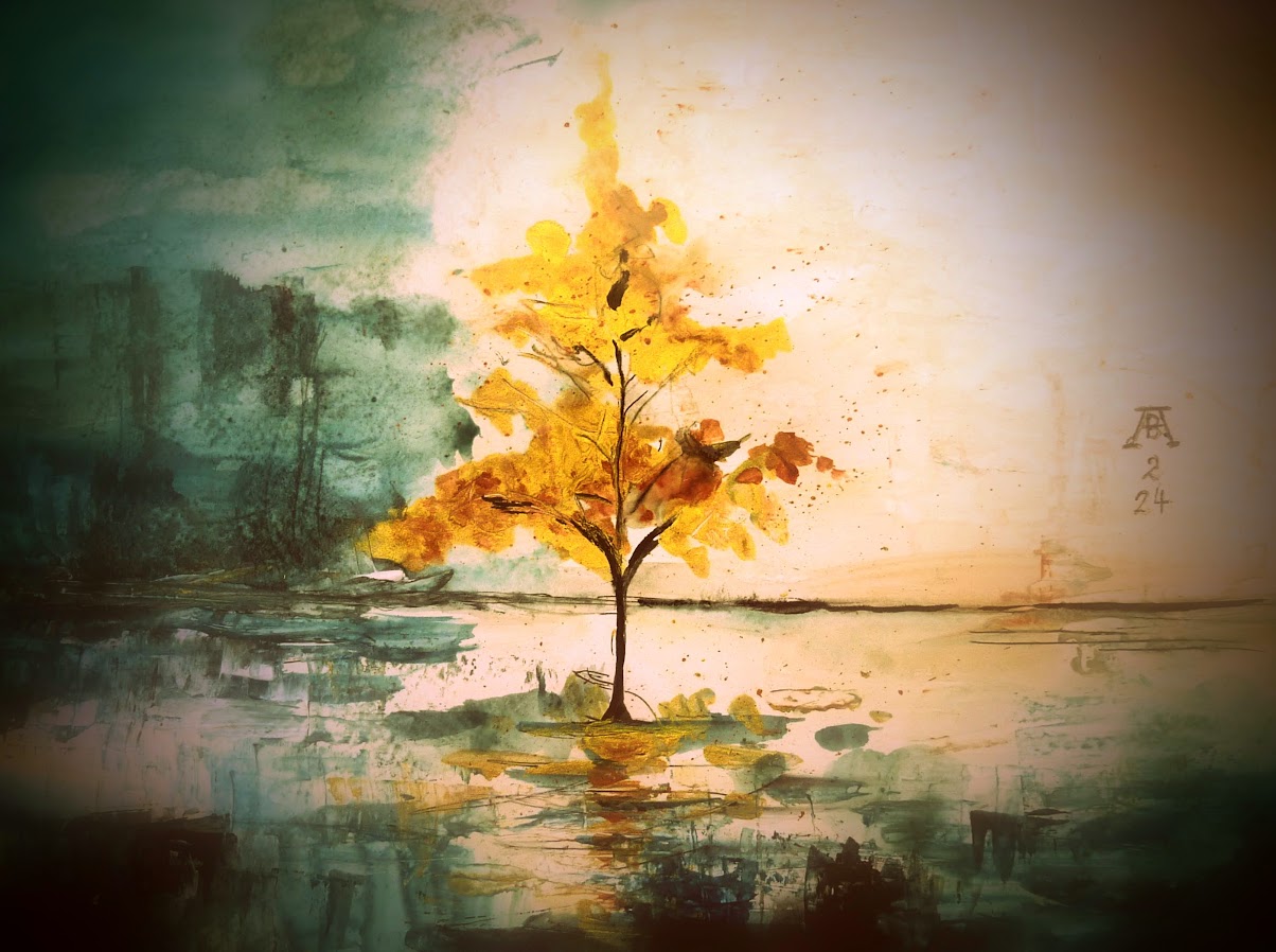1.2.2025 Ein einsamer goldener Baum im Sumpfgebiet -