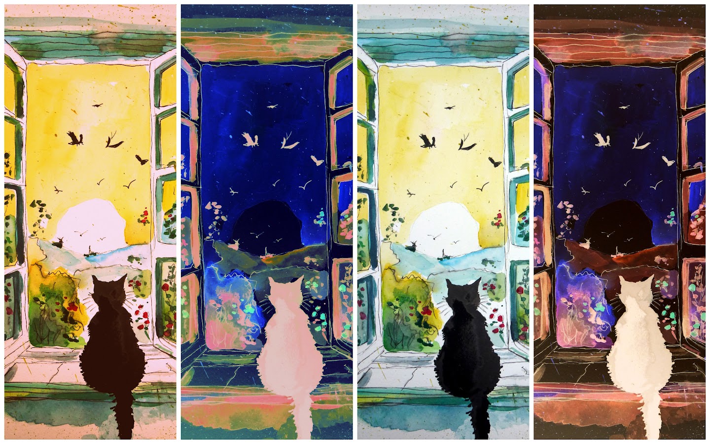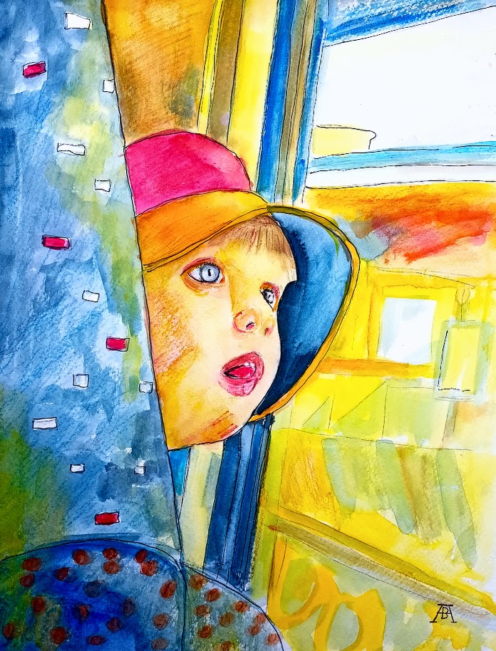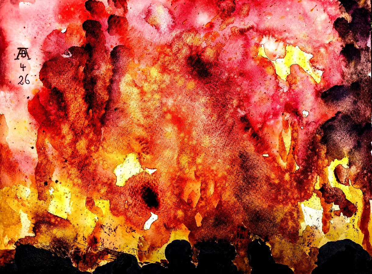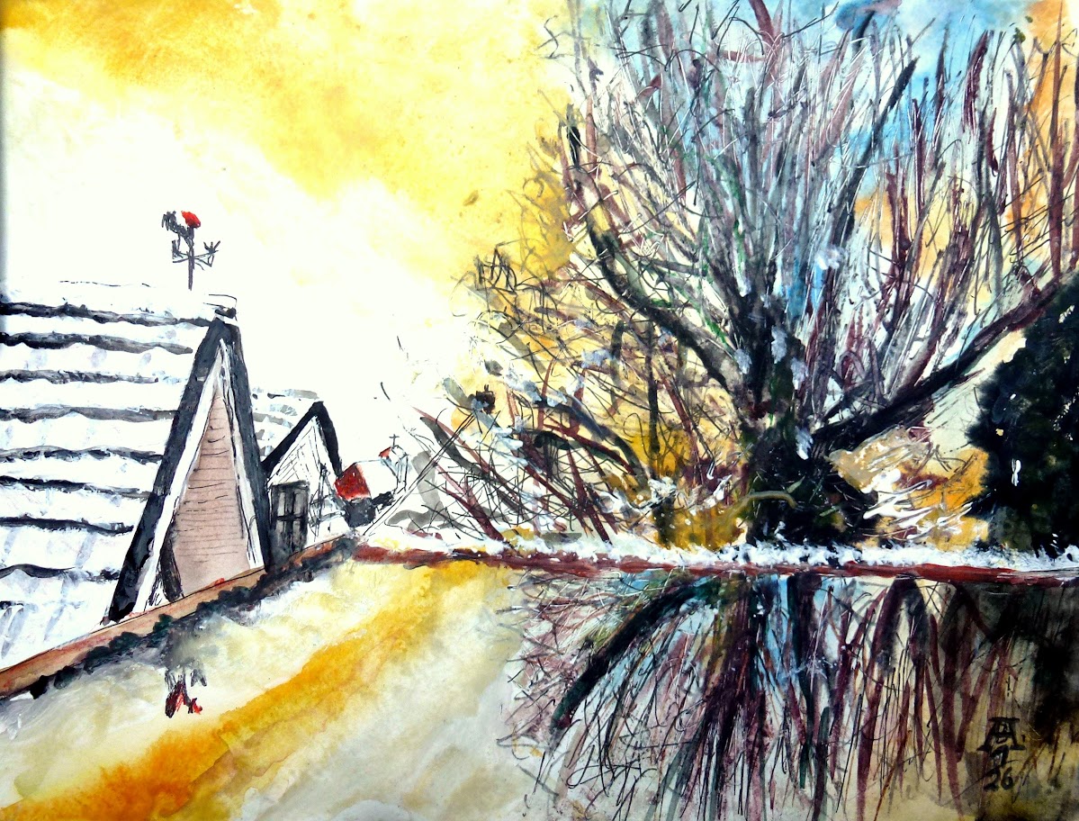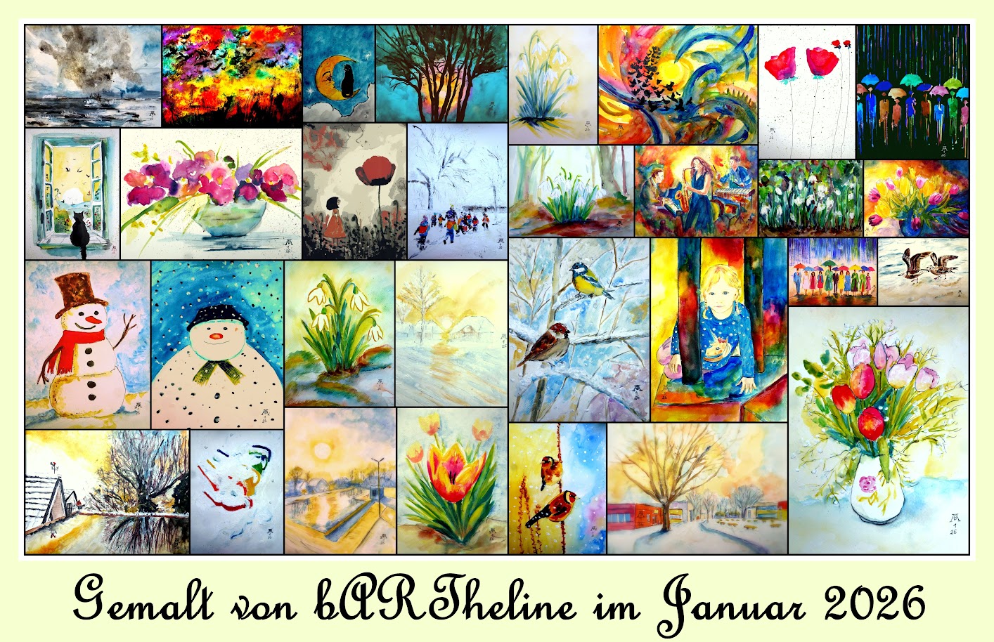 Tobendes Meer - Aquarell 32x24cm - von bARTheline - 1.1.2026 Feuerwerk - Aquarell 32x24 cm - von bARTheline - 2.1.2026 Tinka am Fenster -