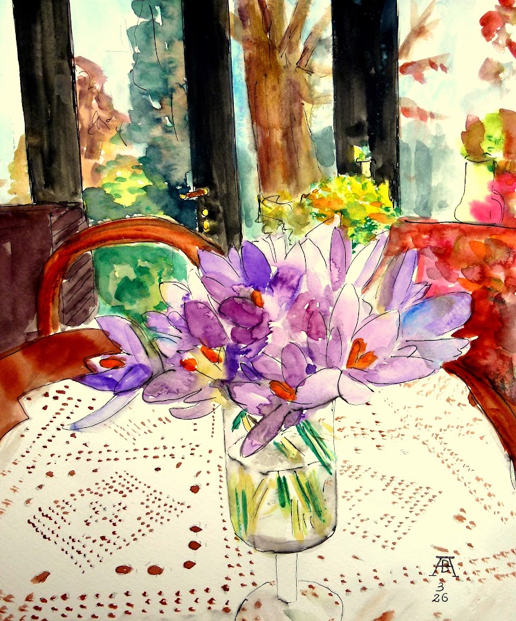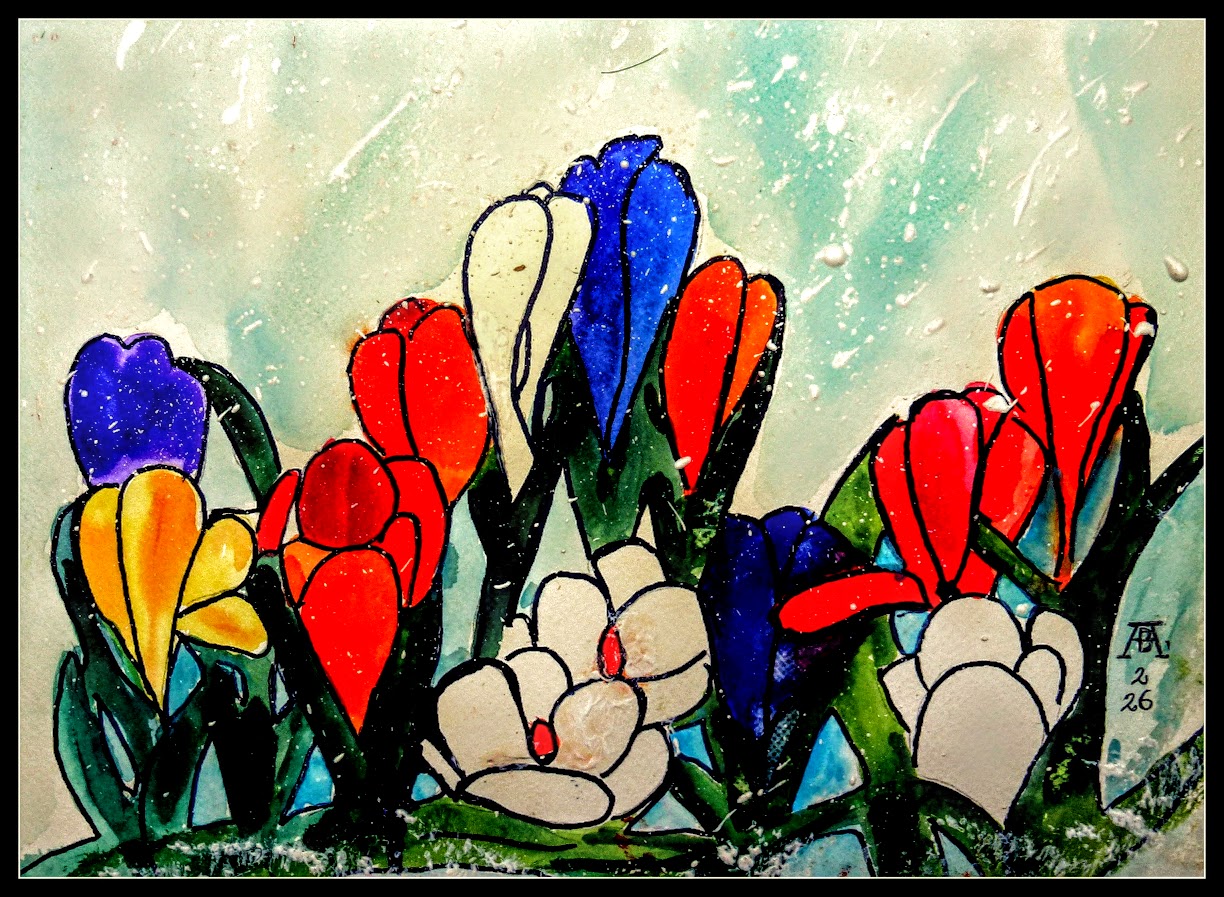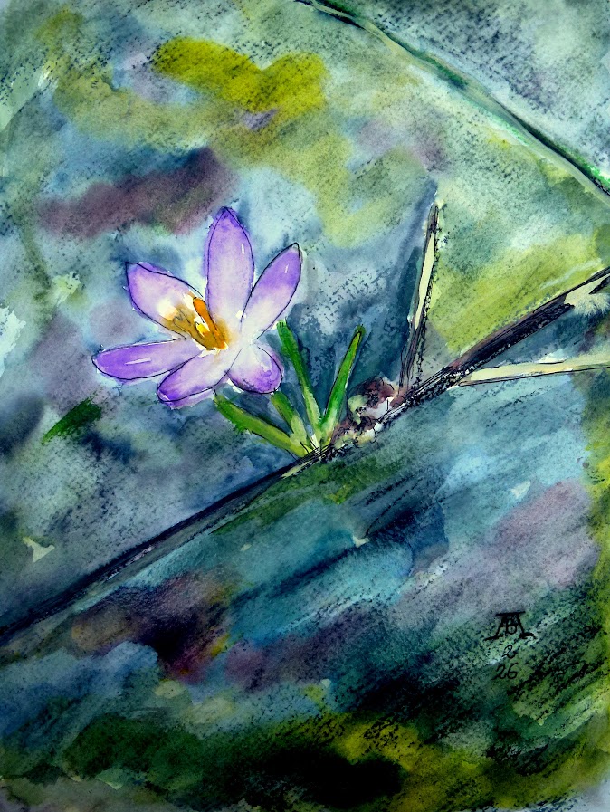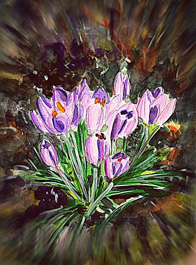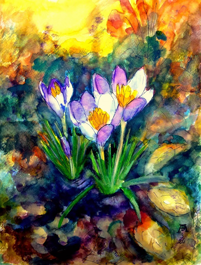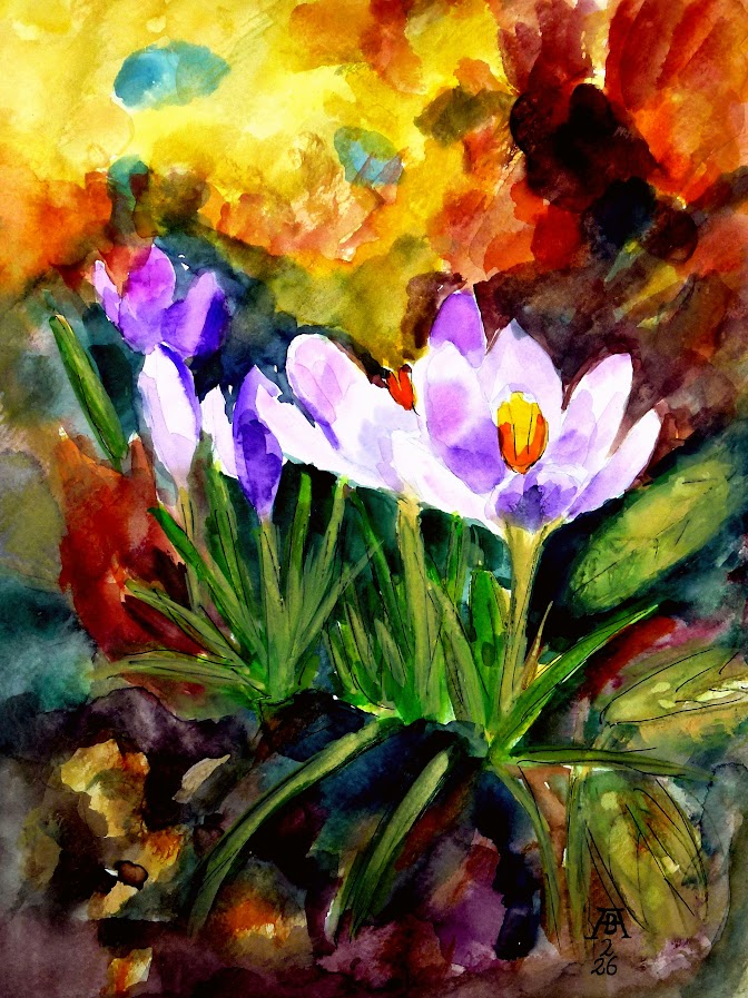 28.2.2026 Gemalt von bARTheline im Februar 2026 Krokusse aus dem Garten -